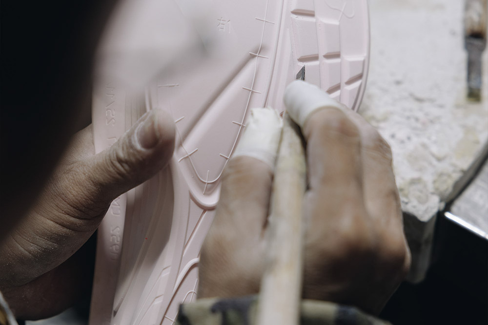 공장에 들어서자, 가장 먼저 보인 건 신발이 아니었다. 공장 한쪽에서는 신발을 만드는 것이 아니라, 신발 제작에 필요한 부품을 만드는 작업이 선행되고 있었다. 미드솔과 아웃솔의 형태를 결정하는 몰드, 즉 신발 모양 틀을 제작하는 과정이다. 디자인이 끝난 신발은 곧바로 생산으로 넘어가지 않는다. 그 형태를 구현할 수 있는 부품이 먼저 필요하다. 몰드는 부품을 만들기 위한 형틀이다.