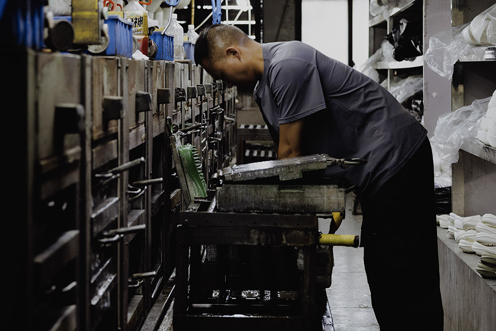 이번에 방문한 진장의 여러 공장은 신발을 전혀 다른 물건으로 보게 만들지는 않았다. 다만, 같은 신발을 다른 기준으로 보게 만들었다. 공장에서 신발은 한 번에 완성되지 않는다. 발의 형태를 설계하고, 금형을 깎고, 갑피를 짜고, 자르고, 프린팅한다. 수십 개의 부품이 각자의 역할을 가진 채 하나의 완성품으로 조립되는 방식인 이 과정은 마치 어릴 적 뉴스에서나 보던 자동차 조립 공정을 떠올리게 했다. |